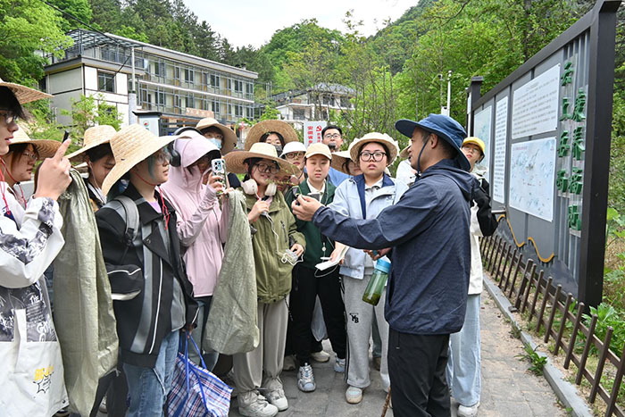 此次野外实践教学场所选择在素有“大别山绿色明珠”之称的鹞落坪,其独特的山地气候孕育了丰富的药用植物资源。野外实践期间,中药学专业师生深入山林腹地,以“理论讲解+实地考察”相结合的形式展开教学活动。指导教师结合鹞落坪地域特色,讲解了凹叶厚朴、白花败酱、一把伞南星等300余种药用植物的形态特征及药理功效。同学们通过观察花果、触摸枝叶、辨识气味将理论与实践紧密联结,不断完善中药学认知体系。