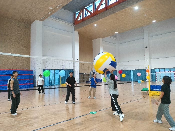 “超级气排球”以其独特的运动魅力收获全体同学的喜爱。直径达80厘米的巨型气排球降低了运动门槛,同学们自由组队展开攻防对决。赛场上,跳跃扣杀的矫健身影与此起彼伏的加油声交织,既展现了团队协作的默契,又释放了学业积累的压力。“零门槛”的运动条件让不同运动基础的同学都能在竞技中收获快乐。