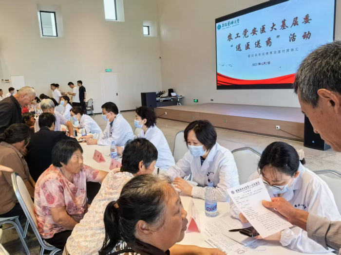 6月7日,农工党安医大基层委在黄泊渡村开展“同心安医·健康行”活动,通过现场义诊、健康知识宣讲以及血糖血压检测等方式,为当地群众提供全方位的医疗服务。活动现场前来就诊和咨询的群众络绎不绝,专家接诊台前排起长队。农工党安医大基层委还向当地群众捐赠了价值3000元的常用药品,切实缓解群众用药需求。