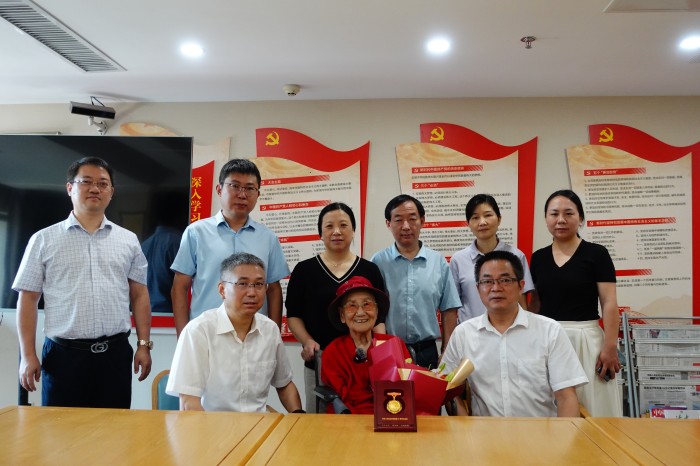 今年96岁高龄的张秀亭老人,1945年在河北永年县参加抗日游击大队,经历抗日战争、解放战争。中华人民共和国成立后,她先后在治淮委员会办公所门诊、安徽省建医院任护士。张老虽年近百岁,仍精神矍铄、思路清晰。抚摸着纪念章,老人眼眶湿润地说道:“我年纪这么大了,组织还没忘记我,大家来看我,我很激动。我一辈子都会听党话,跟党走。”